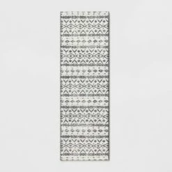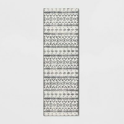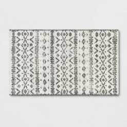 Create a perfect focal point in your home with this Black Diamond Printed Aztec Accent Rug from Opalhouse™. Showcasing seamless diamond stripes accented with a unique pattern and a stitched border design in neutral black and white hues, and a woven design for soft comfort underfoot, this black printed rug easily blends with any existing or new decor style. With a durable latex backing that helps keep the rug in place and a low pile height that’s easy to clean and maintain, this rectangular accent rug brings style and comfort to any space.