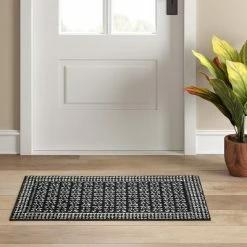 Bring textural appeal and comfort to your home with the Basic Rug from Made By Designβ’. Showcasing a diamond-etched design in a solid color palette of charcoal gray, this rectangular woven rug creates interest and adds depth to your room without competing with other prints and textiles, and blends well with both traditional and contemporary decor styles. It’s framed by a matching solid and stitched border for a neat and sophisticated look. Easy to clean, this gray area rug also has a medium-pile construction that offers a soft feel underfoot, while its latex backing helps provide sure and secure footing.