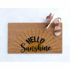 Liven up your exterior with Shiraleahβs βHello Sunshineβ Doormat. This rectangular doormat features a natural background with a bright sun, and combination of block and cursive font, giving this cheeky doormat a refined flair. Measuring L 30″ x W 18″, and constructed from coir and vinyl, the βHello Sunshineβ Doormat is the perfect addition to your entryway this summer. Pair with other items from the Shiraleah home collection to complete your look!
