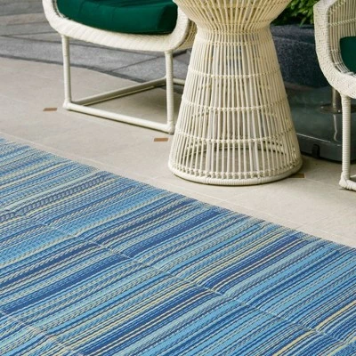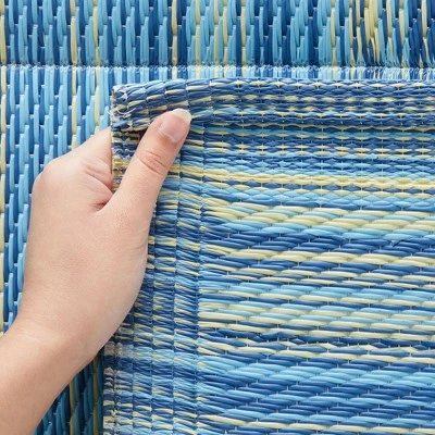 - Plastic Outdoor Rug: Display this multi-colored blue striped straw rug on the patio, garden, balcony, or deck to create a functional, stylish outdoor space for your home