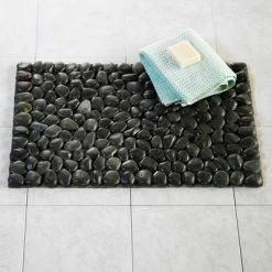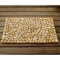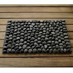 - This unique pebble mat is an earthy addition to any space, particularly as a welcome mat or a delightfully tactile bath mat