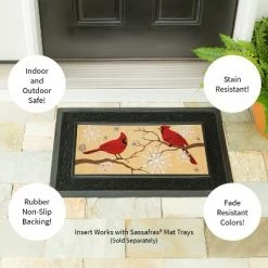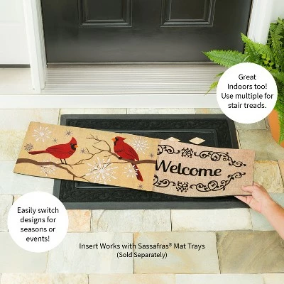 - This interchangeable mat insert is the perfect way to dress up your door way for the season! Crafted from durable materials with a rubbber backing, it stays in place while collecting unwanted debris. The heat-transferred artwork will stay bright for years to come.