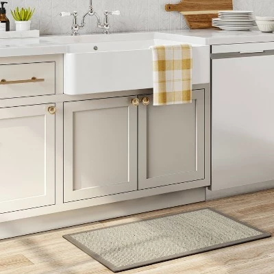 Add some earthy style to your home with the Textured Pet Rug from Threshold™. Showcasing a textured design in a muted color palette of brown, these rugs creates interest and adds depth to your room without competing with other prints and textiles, and blends well with both traditional and contemporary decor styles. It’s framed by a stitched border in solid brown for a neat and sophisticated look. Easy to clean, this flat-pile rug is ideal for use in a variety of areas within your home, and it has a latex backing to help keep the rug in place.