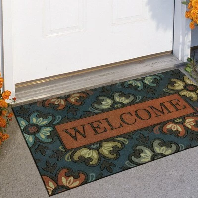 Enhance your entryway with the floral motif of the Floral Doormat in Blue by Mohawk Home. Not only is this door mat fashion-forward, but it’s eco-friendly, too, made from recycled rubber tires. The top surface is constructed of a 100 percent polyester flock, made to absorb moisture and scraping dirt and debris from shoes before being tracked indoors. These durable weather-resistant materials are ideal for outdoor areas, including the porch, deck, patio or garage. Cleaning this mat is a breeze; simply shake off loose debris or rinse with a garden hose for easy, hassle-free care.