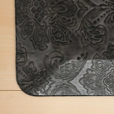 The Emeril Comfort Air anti-fatigue kitchen mat offers an exceptional blend of function, comfort, and style for your decor. The embossed damask design adds a classic touch to any decor. Constructed of thick, air-infused memory foam with a smooth beveled edge, this anti-fatigue mat is perfect for where you stand the most and helps to relieve stress and aches on your feet, back and joints. The non-skid backing helps the mat to stay in place. This easy-clean mat is stain, oil, and water resistant.