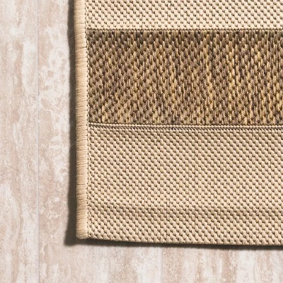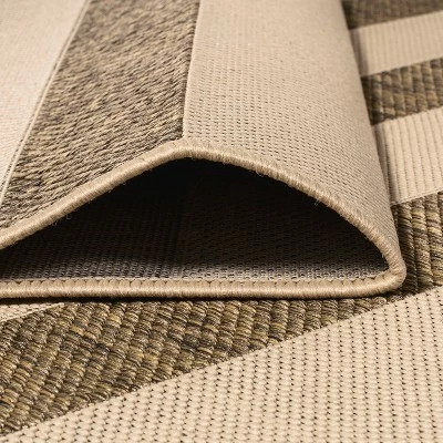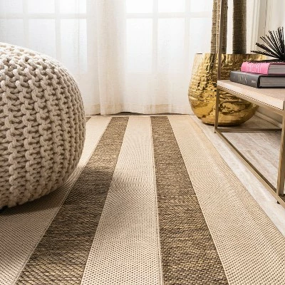 A simple wide stripe is woven with a mingled effect to create a classic neutral rug. This versatile rug is perfect for your tropical cottage porch or modern outdoor patio. The traditional stripe is a family-friendly solution for a casual living room, modern bedroom, kitchen hallway, entry or kids bedroom. The pet-friendly and kid-proof flatweave design makes it easy to clean, and perfect for the beach house.
