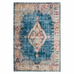 The Lynn Medallion Collection is a brilliant display of trendy new transitional area rugs designed for today’s cultured decor preferences. Timeless motifs are revived in a wash of vibrant and fashion colors conveying radiant, decorative energy throughout room decor. These transitional rugs are a mixture of modern color and traditional elements and help pull a room together. Lynn rugs are finished with an antique patina and made using supple synthetic yarns for long lasting color and beauty.