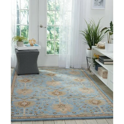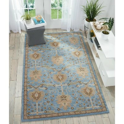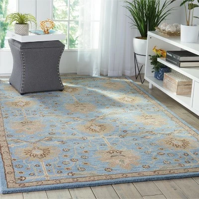 Traditional Persian rug patterns on a finely woven wool pile make this Jazmine Collection area an elegant and durable addition to any room in your home that needs an extra styish touch. Thick, hand-tufted fibers in subtly abrashed blue and beige form classic vase patterns for vintage appeal that will stand up to plenty of foot traffic for years to come. Please note: Slight variations in color from rug to rug are natural characteristics of high quality handcrafted rugs. Your rug may not exactly match the rug pictured on this page.