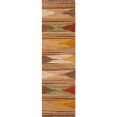 Safavieh Pandora Rugs are an artful display of bohemian flat weave area rugs. Pandora rugs are hand woven using pure soft cotton in the finest traditions of nomadic people from the Middle East to Central Asia. The simple stripe structure brings a homey warm vibe into the room and is perfect for those who are looking to create a transitional room. The revived geometric-inspired designs and striking colors of Pandora add an alluring decorative element in room decor.