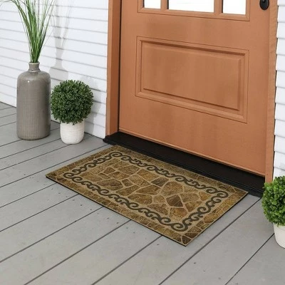 Effortlessly enhance your home with the Mohawk Scroll and Stone Ornamental Entry Mat, available in size 1′ 6″x2′ 6″. This accent rugs brown color palette instantly adds a touch of modern style. Durably designed with our printed construction, this outdoor rug is crafted with a stain resistant 100% polyester face and backed with the security of non-skid recycled rubber.