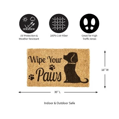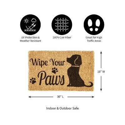 Brand new πŸŽ‰ Evergreen Wipe Your Paws πŸ• Dog Woven Indoor Outdoor Natural Coir Doormat 30 x 18" Multicolored πŸ₯°