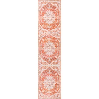 An ornate medallion in the center of this design recalls traditional Persian rugs, but updated colors add a modern Bohemian-inspired twist to the classic design. Ivory mingled with shades of clay creates a vintage, distressed look. Use this stylish rug in a city apartment or coastal home; dress up a bedroom, living room, dining room, entry or porch.