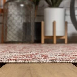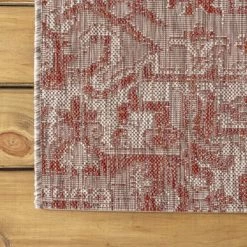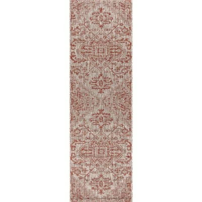 With its star-inspired medallion, this borderless rug adds dreamy Bohemian style to an outdoor porch or patio. Varied tones of red and rust on a mingled gray background give this rug a hand-woven, vintage vibe. The flatweave design is great for high-traffic spaces indoors too.