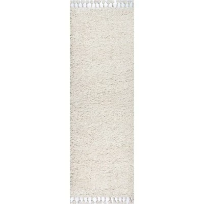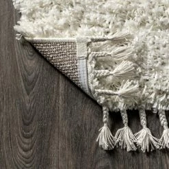 - Soft white shag with twisted fringe adds texture