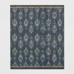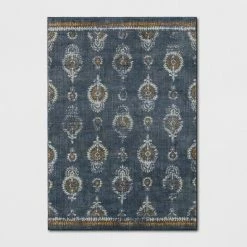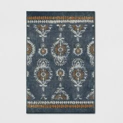 Make your home a little more warm and inviting with the Journey Block Print Floral Rug from Threshold™. This rectangular accent rug adds a colorful, textured touch to your floor with a multicolored geometric print on a navy background, and it features latex backing to help keep it in place. Its low pile height makes it suitable for placement in even the highest-traffic areas of your home, and it’s machine washable for easy cleaning.
