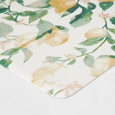 Enhance the look of your space while also adding comfort underfoot with this Lemons Comfort Kitchen Runner from Threshold™. The kitchen runner showcases an allover lemon print with a faded finish for a charming look that will instantly brighten up your kitchen’s decor. The flat-pile kitchen rug offers a comfy feel underfoot, while the PVC backing helps keep it in place. Place this runner under your kitchen sink or alongside your stove to cook delicious meals or wash dishes in style.