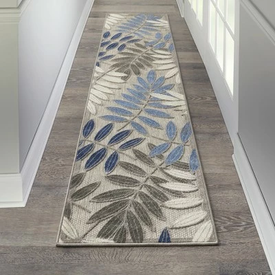 A cheerful and charming oversized leaf design is a fun, flirty, and fashionable way to uplift any environment, especially when presented in complementary hues of navy blue and ivory. This Aloha indoor/outdoor area rug from Nourison is created from premium stain-resistant fibers for long wear, low maintenance, and a splendid texture.