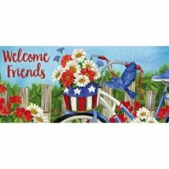 Welcome style to your door step! This decorative Doormat tray features a beautiful cutout design of fleurs around the border of the tray. The elegant design will delight neighbors and friends, and will quickly become a staple of your home decor. This stunning set has everything you need to bring welcome style to your door step. This stunning array includes a mat tray and four seasonal mats in a variety of designs. This spring and summer door mat set will get your outdoor oasis all set to celebrate. You’ll enjoy a beautiful 3D multi colored doormat with a colorful group of patterned Easter eggs that reads “Happy Easter”. Hearts for Valentine’s day, a pot of gold for St. Patricks Day and a patriotic bicycle for Independence Day.