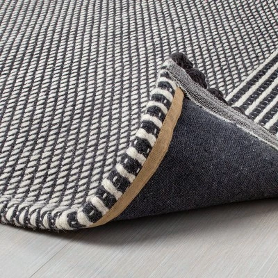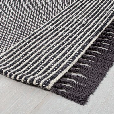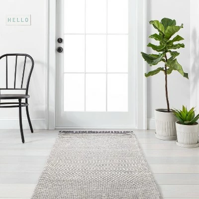 This Textured Border Stripe Area Rug from Hearth & Hand™ with Magnolia brings an artful appeal to your space while simultaneously making your home a bit more comfy. Showcasing an allover textured pattern featuring a subtle multiple stripe-like design, this indoor woven rug helps you maintain a clean floor while blending easily with your existing decor. The indoor rug with added tassels also features a flat-pile construction, making it a highly versatile accent piece that’s easy to place in and around your living room or entryway. Simply toss it on the floor and liven up the area during traditional family dinners or fun gatherings with friends.