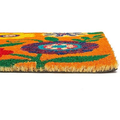 - PERSONALIZE YOUR HOME: Personalize your entry with this bright and colorful floral natural coir doormat; greet all your guests with this charming rug that is perfect for any home