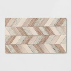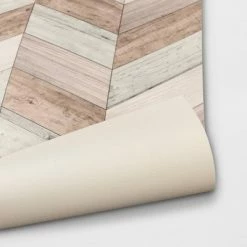 Add an instant style statement to your floor with this Wood Herringbone Vinyl Accent Rug from Threshold™. Fashioned in a versatile brown hue that pairs with a variety of decor styles, this brown accent rug features a classic herringbone pattern on the wooden top for a touch of texture and style, and it has a foldable design that allows for easy cleaning and care. With a durable backing that also helps keep the rug in place on smooth surfaces and a flat pile height for easy cleaning, this vinyl accent rug pairs functionality with style.