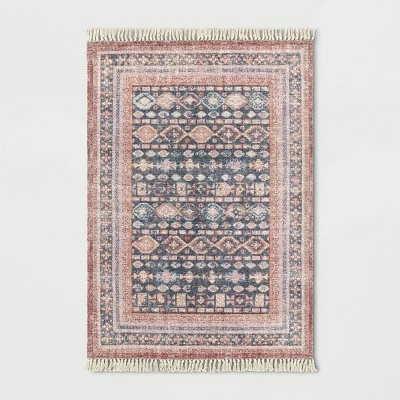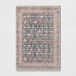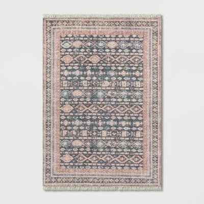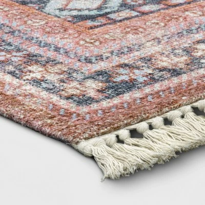 Give your space all the attention it deserves by styling it with the Alexandra Floral Printed Border Persian Rug from Opalhouse™. Showcasing opulent oriental motifs in a subtle and elegant color palette with floral-print border and tassel detailing for a striking look, and a woven construction for soft comfort underfoot, this blush pink Persian rug creates a focal point in any room. With a durable latex backing that helps keep the rug in place and a low pile height that’s easy to clean and maintain, this rectangular accent rug brings style and comfort to any space.