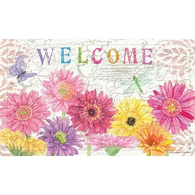 - Measures 30 x 18 inches. Freshen up your doorstep for spring with this Gerbera Daisy Welcome Embossed Floor Mat.