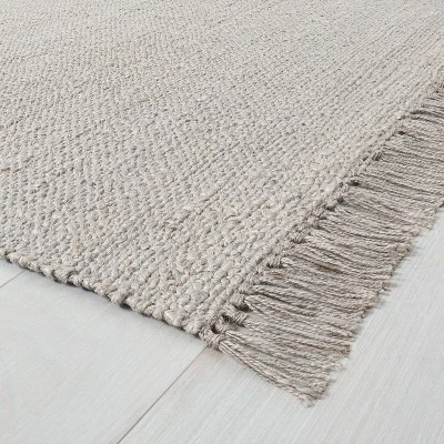 Give your indoor space an upgrade with this Bleached Jute Fringe Rug from Hearth & Hand™ with Magnolia. Featuring an allover textured pattern in a subtle hue, this handmade accent rug makes the perfect addition to your indoor space. Knotted tassels along the edges lend a pretty pop to the whole. Crafted from resilient jute, this decorative woven accent rug ensures long-lasting use, while the flat-pile construction makes it ideal for high-traffic areas. The neutral tone allows for a seamless coordinating with almost any existing decor, making it a versatile accent piece.