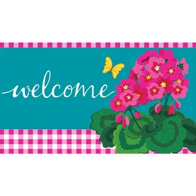 - Measures 28 x 16 inches. Add some seasonal charm to your entryway with this Spring Geraniums Coir Mat.