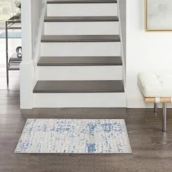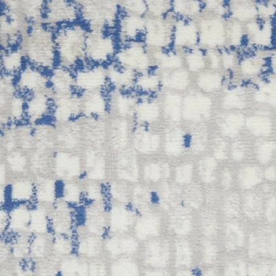 With its abstract geometric pattern, this Whimsicle Collection area rug adds a cool and neutral vibe to your living room, bedroom, or home office. A soft mix of grey, blue, and ivory easily complements modern and contemporary styles of home decor. This low-profile design is machine made of soft, easy to clean polyester fibers.
