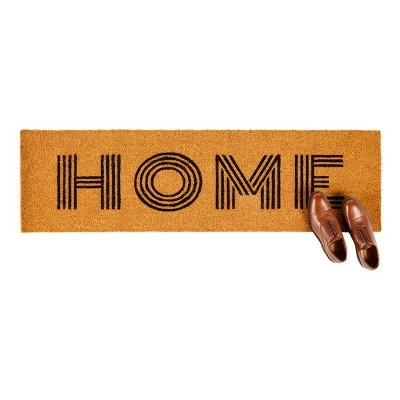 Place this coir mat at your front door, patio entry, or garage to protect your wood, carpet, or tile floors from unwanted stains caused by mud, grass, and snow. The brown front porch rug features decorative bold black letters that spell out HOME that will instantly elevate your farmhouse home decor while simultaneously ensuring your floors stay clean and damage-free. The welcome doormat measures 17 x 60 inches is made from natural coir fiber with a rubber backing to provide additional stability while cleaning your shoes.Product names are trademark of listed manufacturer or other owners, and are not trademarks of eForCity Corp. The manufacturer does not necessarily endorse use of these products.