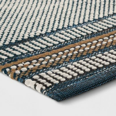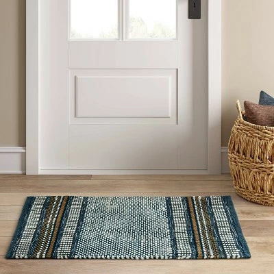 Give your bare floors a comfy, stylish makeover with this Striped Scatter Rug from Threshold™. Showcasing a striped pattern in neutral hues for an eye-catching look, and a woven construction for plush comfort underfoot, this handmade accent rug makes a wonderful addition to any room. Complete with a flat-pile height that is perfectly suited for a high-traffic living room or a busy dining space, this rectangular accent rug brings style and comfort to any space.