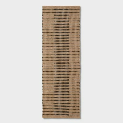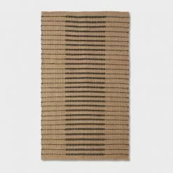 Add some timeless appeal to your home with the Reseda Hand-Woven Striped Jute-Cotton Area Rug from Threshold™ designed with Studio McGee. The handmade area rug is adorned with black woven stripes over a light brown background to provide versatile appeal for multiple decorating styles. Easy to clean, this flat-pile rug makes a wonderful and versatile addition to a variety of spaces both inside and out of your home.