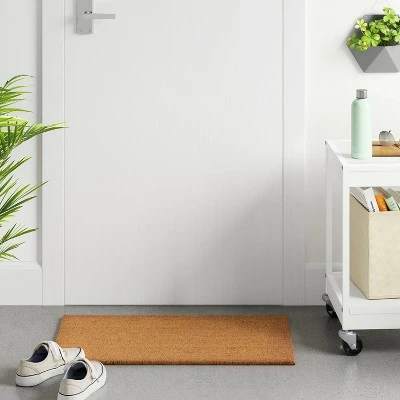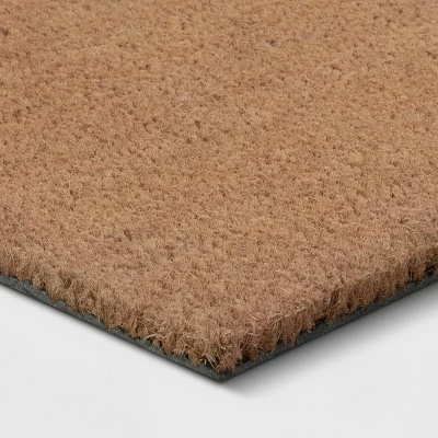 This 1’6″ x 2’6″ Solid Doormat from Room Essentialsβ’ is perfect for any outdoor entryway in your home. Made with coir fibers to help remove dirt and debris from shoes, it features PVC backing to help prevent the mat from slipping. The solid beige hue lets this doormat pair effortlessly with any existing decor, and cleaning is as easy as shaking the mat free of debris.