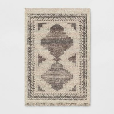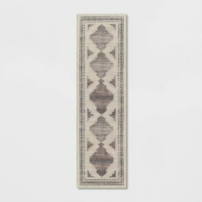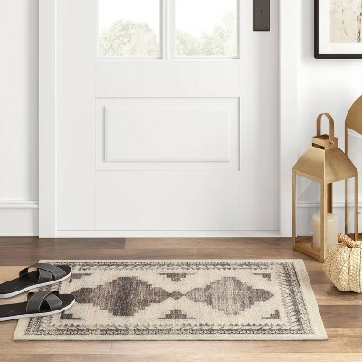 The Cromwell Placed Printed Persian Rug from Threshold™ makes a versatile addition to any home color palette or decor scheme. This rectangular rug provides an effortless way to enhance the look of your empty floors while adding comfort and character to any room. Inspired by traditional Persian design, this woven rug sports faded medallion motifs running the entire length down the center, framed by a matching border to give this rug a sophisticated look and feel. Easy to clean, this low-pile rug is ideal for use in a variety of areas within your home, and it has a latex backing to help keep the rug in place.