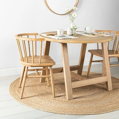 Add a warm, inviting ambiance to your indoor space with this simple yet stylish Round Jute Rug from Hearth & Handβ’ with Magnolia. Fashioned in a classic round shape, this indoor area jute rug comes in a natural beige-tan hue with an intricate braided pattern arranged in concentric circles for a pop of pattern. The neutral tone of this transitional floor rug allows for seamless coordinating with any existing decor or color palette, and can dress up your floors to perfection. The dense weave and flat-pile construction make it ideal for high-traffic areas. Toss it anywhere from the foyer to your living room for an instant update.