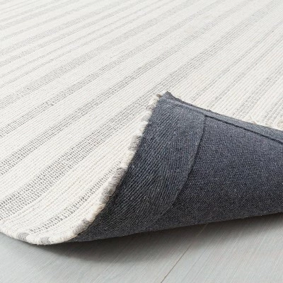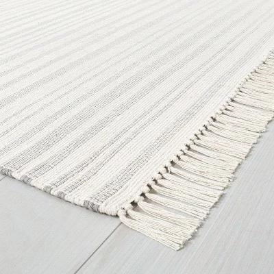 Add a dash of comfort and subtle style to your living area with the Stripe with Fringe Area Rug from Hearth & Hand™ with Magnolia. Featuring an allover textured design with a subtle striped pattern and tassels on either end, this striped area rug blends in easily with your existing decor. Crafted from a soft, durable fabric, this woven area rug offers plenty of lasting use, and the latex/cotton backing helps provide secure footing. A must-have addition to your interior, this area rug features a flat-pile construction, making it highly versatile and easy to place in your living room, entryway and more.