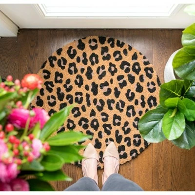 Spruce up your exterior with Shiraleahβs Leopard doormat. This doormat features a distinctive circular silhouette with a posh black leopard print upon a natural background. The combination of shape and print will add sophistication to your doorstep without compromising style or functionality. Diameter equating 27.5β, and made from coir with vinyl backing, the Leopard doormat is the perfect way to accentuate your entryway and will last you seasons to come.