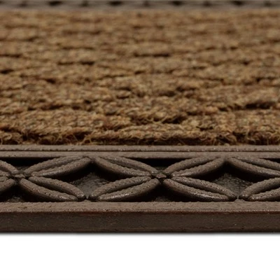 A smart purchase year-round, this doormat exudes sophisticated elegance. Nobody wants the mess of fall and winter tracked all over their home. Welcome your friends and family in style with the Mohawk Chain-Link Doormat in Brown. Made of polypropylene and rubber materials, this durable molded doormat is heavy duty and will not slide around, even in windy weather. It quickly dries after rain or snow and can easily be cleaned by simply shaking off debris, or by spot cleaning with a mild detergent. While it packs plenty of function, its detailed border adds a touch of style, too.