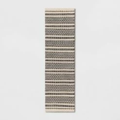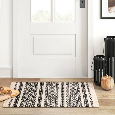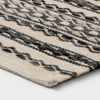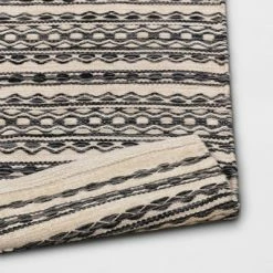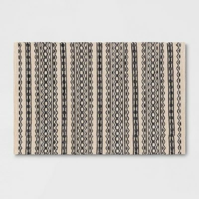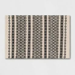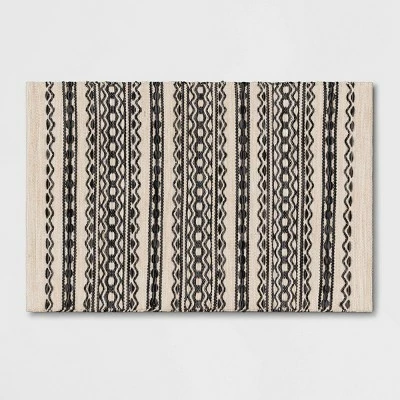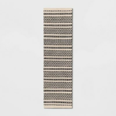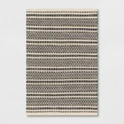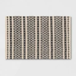 Brighten up your floors with the Norwalk Washable Striped Rug from Threshold™. This rectangular rug provides an effortless way to enhance the look of your empty floors while adding comfort and character to any room. This hand-woven rug is adorned with black stripes that are accented with zigzag or dotted patterns against a white background for a timeless look. Plus, the flat-pile construction makes it an easy choice for any indoor or outdoor space, including high-traffic areas like your kitchen, living room or hallway.