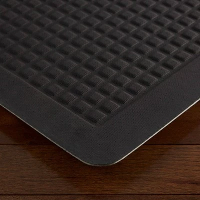 The Emeril Comfort Air anti-fatigue kitchen mat offers an exceptional blend of function, comfort, and style for your decor. The textured design adds a modern look to any decor. Constructed of thick, air-infused memory foam with a smooth beveled edge, this anti-fatigue mat is perfect for where you stand the most and helps to relieve stress and aches on your feet, back and joints. The non-skid backing helps the mat to stay in place. This easy-clean mat is stain, oil, and water resistant.