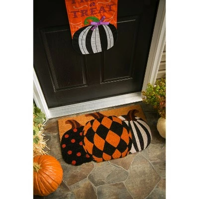 This Pattern Pumpkins Shaped Coir Mat features a trio of striped, check, and polka dot pumpkins for a uniquely festive design. At Evergreen, we are committed to producing premium, quality products to bring a touch of color and personality to your home. We respect and celebrate the uniqueness in everyone by offering one of the world’s largest selections of home and garden decor.