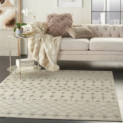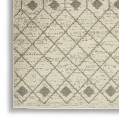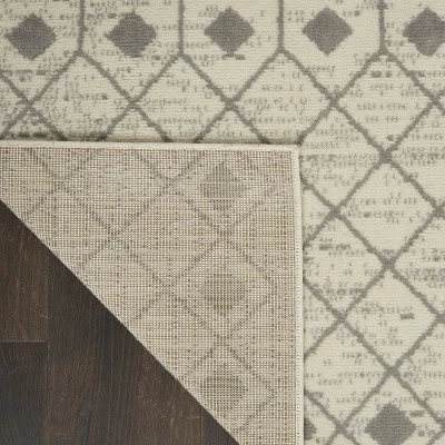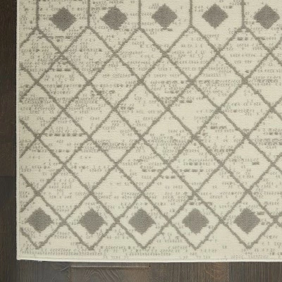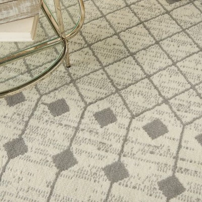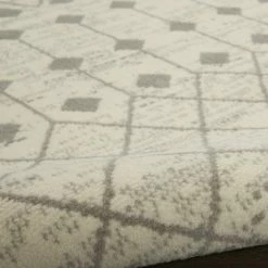 The Moroccan diamond bead pattern of this Grafix area rug creates a dimensional op-art look that draws the eye and pulls a room together. The soft combination of grey and ivory creates a subtle yet stunning focal point for the contemporary home.