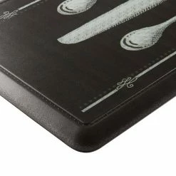 - ANTIQUE DESIGN: The Cat Cora Printed Embossed Gentle Step kitchen mat has an antique flatware design that will bring a welcoming feel into your kitchen dΓ©cor.