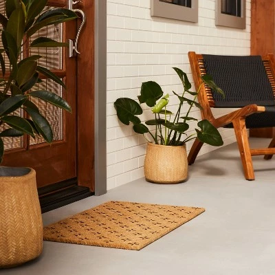 Add a fresh vibe to your entryway with this Floral Print Coir Door Mat from Hearth & Hand™ with Magnolia. This rectangular doormat is made from 100% coir to help keep your space clean, while the backing material helps prevent it from slipping or sliding. Featuring an allover floral print against a tan background, this coir doormat easily adds a warm and friendly vibe to your surroundings.