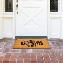 - PERSONALIZE YOUR HOME: Personalize your entry with this funny natural coir doormat that says “The Neighbours Have Better Stuff”; greet all your guests with this silly rug that is perfect for any home