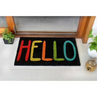 Hot Sale ๐Ÿฅฐ Raj 1'6" x 2'6" Tufted Hello Doormat Black ๐Ÿ””