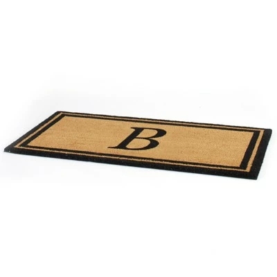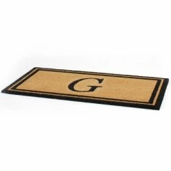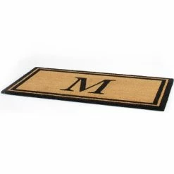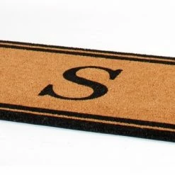 Encourage family and friends to wipe their feet before entering your home by laying this door mat at your front door. It captures dirt and debris before they get tracked inside. The personalized door mat features a large monogram in the center with a bold black border at the edges. An integral part of your home décor, this door mat for your home’s entrance has a nonslip back to keep it from shifting. In the neutral colors of brown and black, this coco coir mat is sure to coordinate with any home’s entryway décor. Coir and PVC. 20″ x 39″