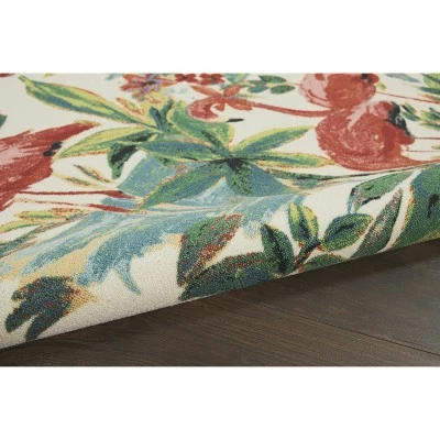 Fanciful flamingos flock together under palm trees to transport you to a warm, sunny beach – no matter the weather. Featuring festive shades of pink, green, blue and red, this indoor-outdoor Flamingo rug from Waverly’s Sun N Shade Collection features easy-care fibers that help you create a lasting outdoor statement for your deck or patio.