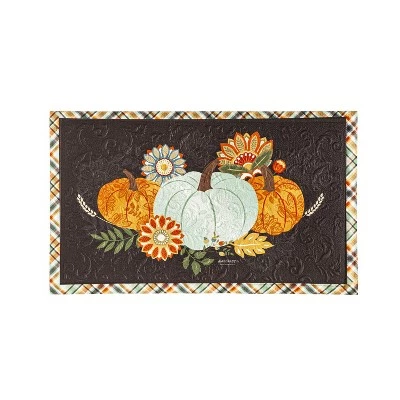 Featuring a bold autumnal design and stunning patterns, this Harvest Pumpkins embossed floor mat will spruce up any front stoop for the fall season. At Evergreen, we are committed to producing premium, quality products to bring a touch of color and personality to your home. We respect and celebrate the uniqueness in everyone by offering one of the world’s largest selections of home and garden decor.